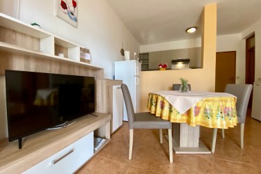 Das Deluxe-Apartment befindet sich im ersten Stock. Es verfügt über einen großen Balkon mit Meerblick und liegt nur 10 Meter vom Strand entfernt. Zur Ausstattung gehören Klimaanlage, WLAN, Sat-TV, Waschmaschine, Geschirrspüler und eine komplette Ausstattung. Im Preis inbegriffen sind ein Parkplatz, die Nutzung der Außendusche und eines Grillplatzes mit Pavillon.