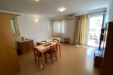 Deluxe Apartment is located on the ground floor. The apartment has a large terrace with a sea view. The apartment has air conditioning, internet - wi fi, satellite TV, washing machine, oven, and is fully equipped. The price of the apartment includes a parking space, wi fi, use of an outdoor shower and a barbecue with a gazebo.