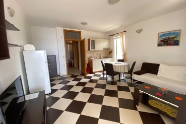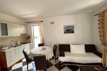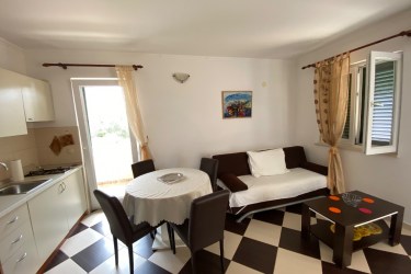 Deluxe Apartman nalazi se na prvom katu. Apartman ima dva balkona sa pogledom na more. Apartman ima klimu, internet - wi fi, satelitsku televiziju, perilicu robe, kompletno je opremljen. U cijenu apartmana je uključeno parkirno mjesto, wi fi, korištenje vanjskog tuša i roštilja sa sjenicom.