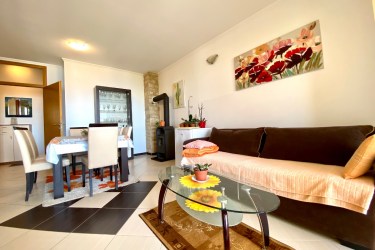 Apartament Deluxe znajduje się na pierwszym piętrze i ma 4 gwiazdki. Apartament posiada balkon z widokiem na morze. Apartament jest w pełni wyposażony, posiada klimatyzację, internet Wi-Fi, telewizję satelitarną, pralkę, zmywarkę, piekarnik. W cenie apartamentu znajduje się miejsce parkingowe, Wi-Fi, prysznic na świeżym powietrzu oraz grill z altaną.