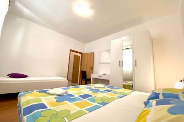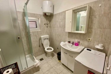 Apartament Deluxe znajduje się na parterze. Mieszkanie posiada duży taras z widokiem na morze. Znajduje się on 10 metrów od plaży. Mieszkanie posiada klimatyzację, internet - Wi-Fi, telewizję satelitarną, pralkę, zmywarkę, piekarnik i jest w pełni wyposażone.W cenę apartamentu wliczone są dwa leżaki na plażę, miejsce parkingowe, możliwość korzystania z prysznica na świeżym powietrzu oraz grilla z altaną.